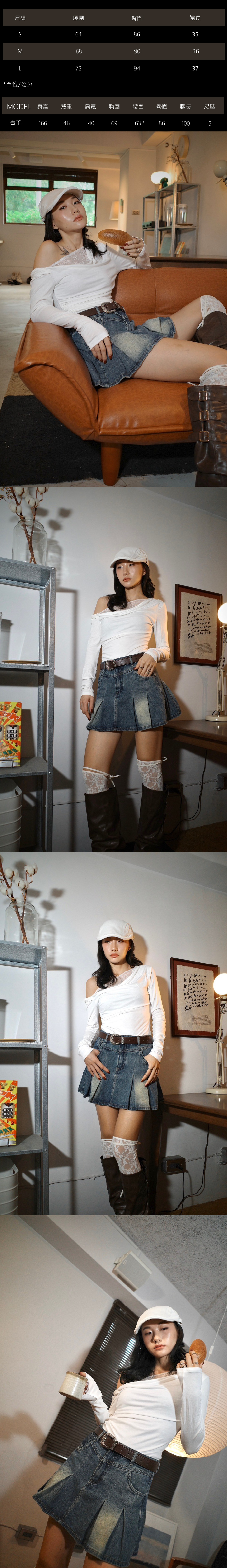 Layer ³ 微辣百褶牛仔短裙B09