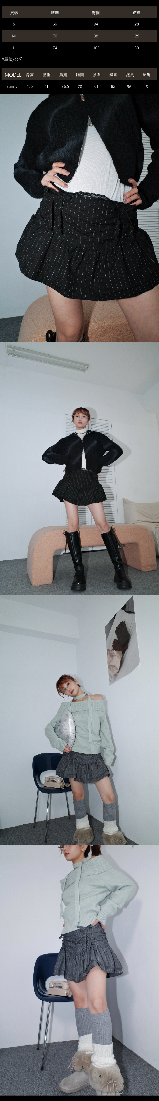 Layer ³純慾蕾絲抽繩短裙(灰/黑)B11